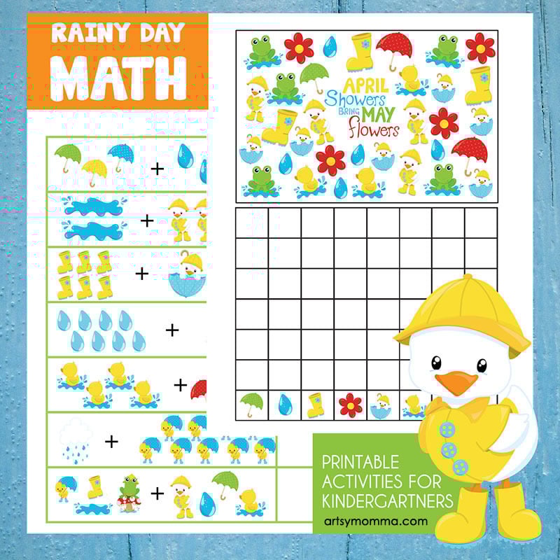 Adorable Kindergarten Weather Theme: Free printable Rainy Day I Spy Graphing Activity and Rainy Weather Addition.